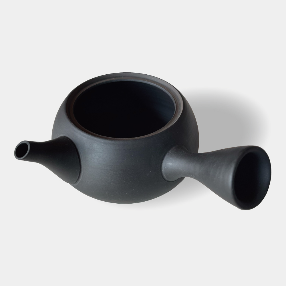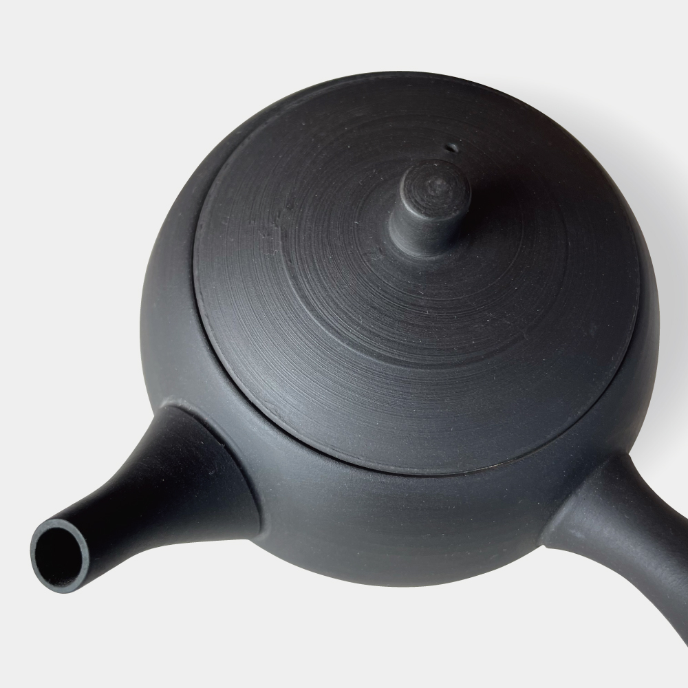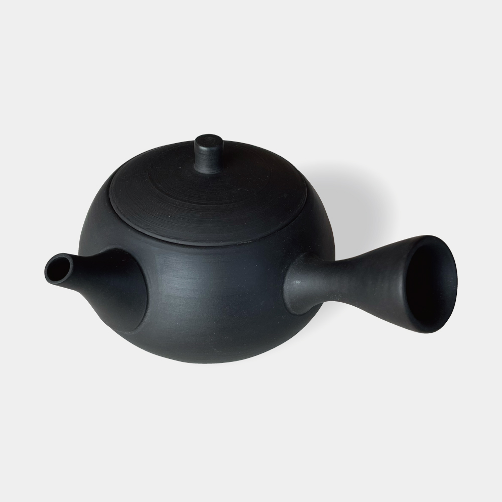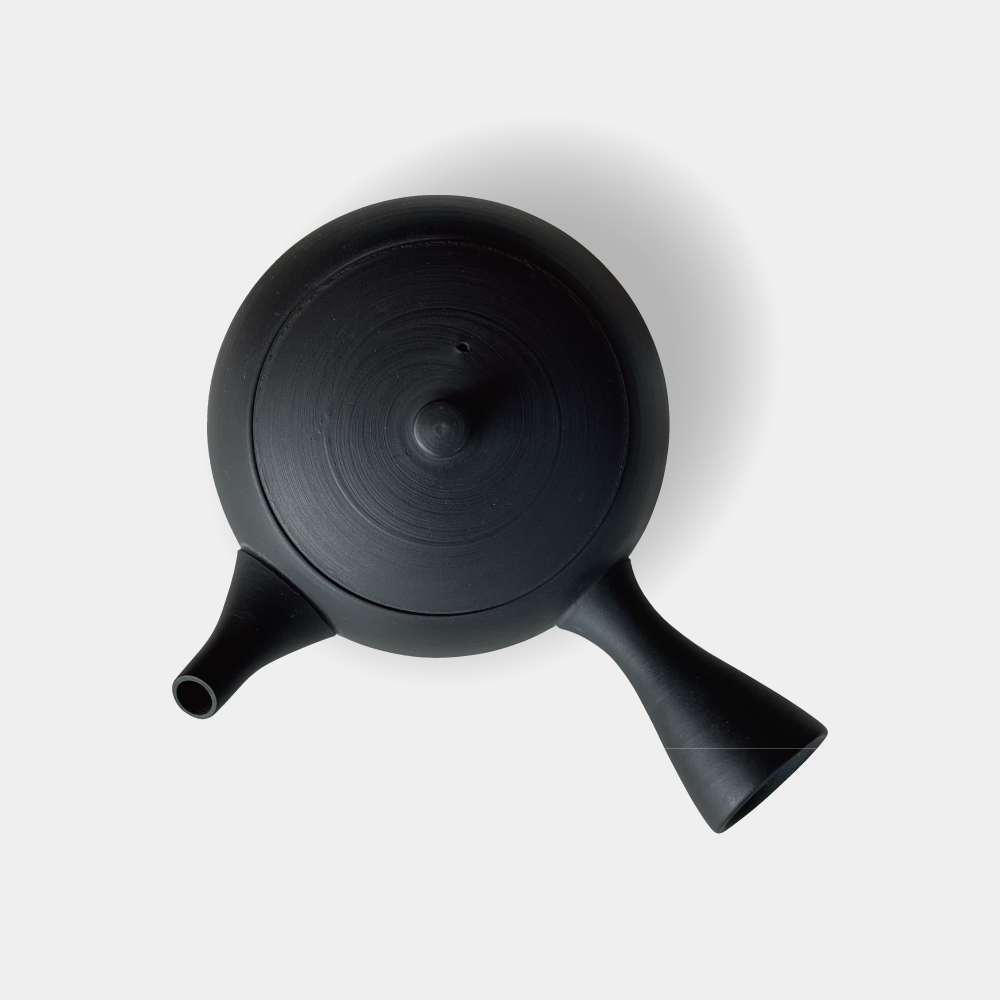 鉄分が多く含まれた朱泥を高温で焼き締め、炭化焼成を施すことで独特なマットの黒に。