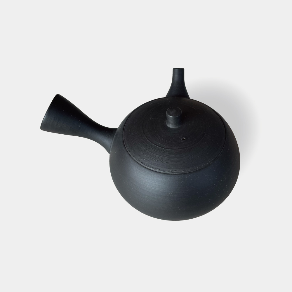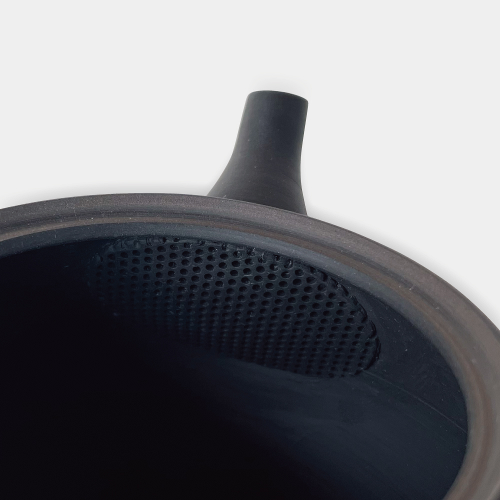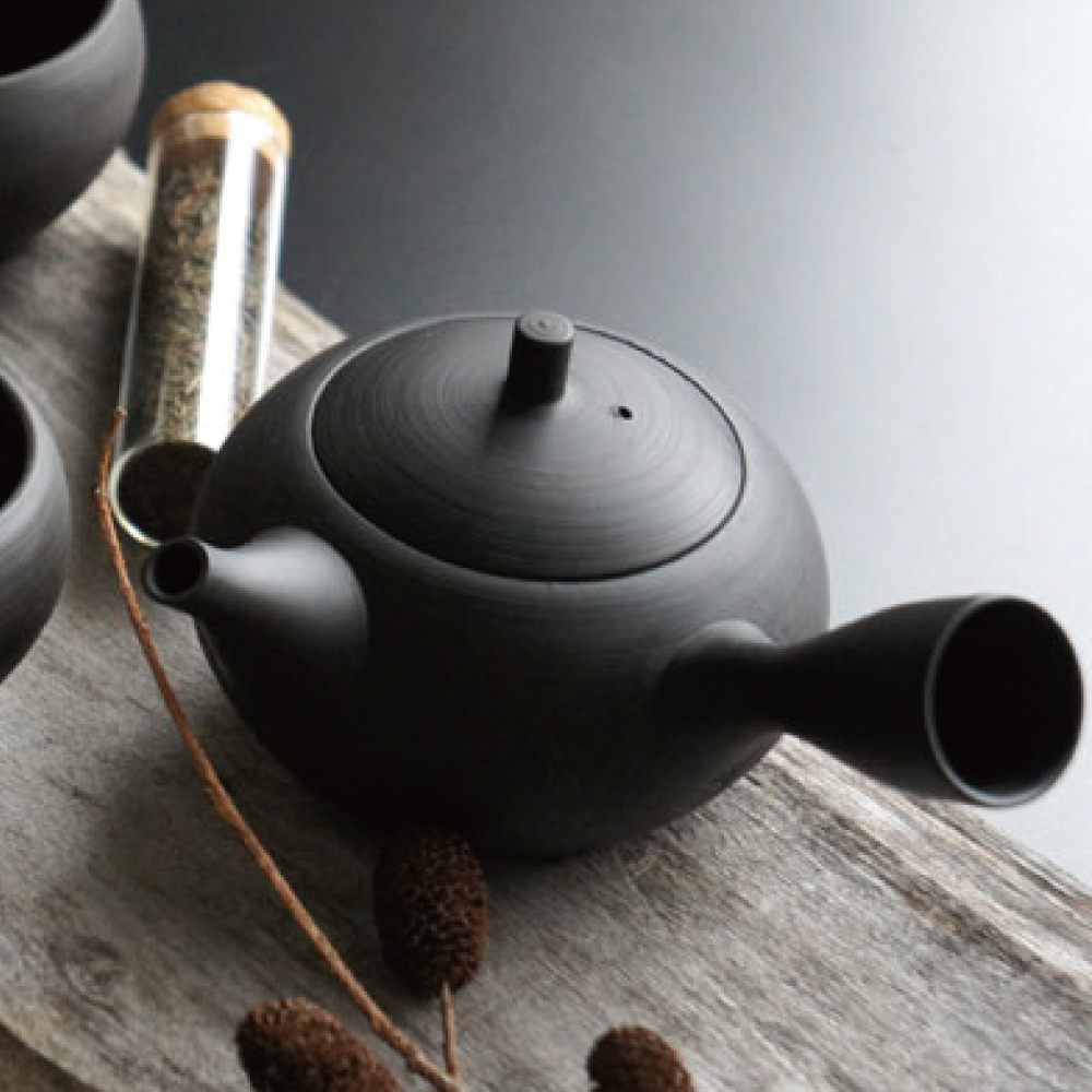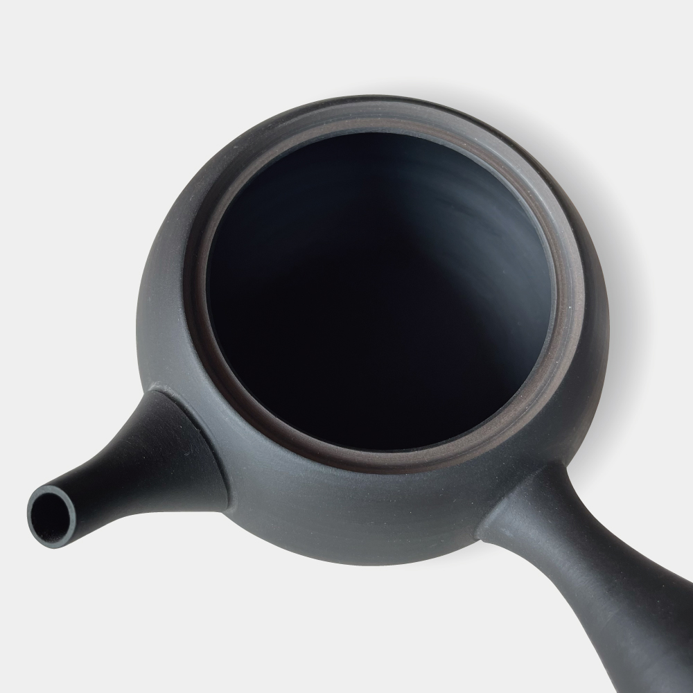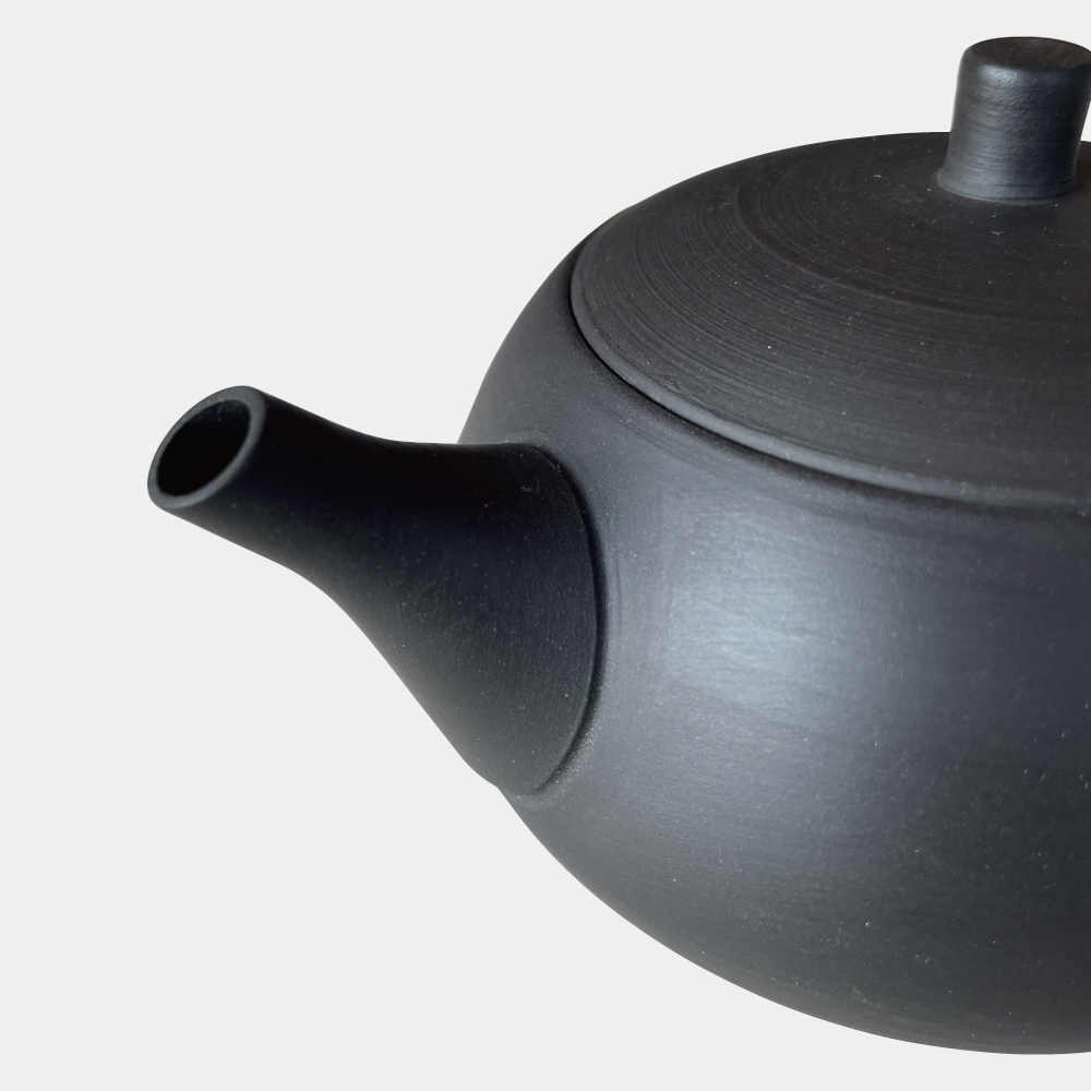 鉄分が多く含まれた朱泥を高温で焼き締め、炭化焼成を施すことで独特なマットの黒に。